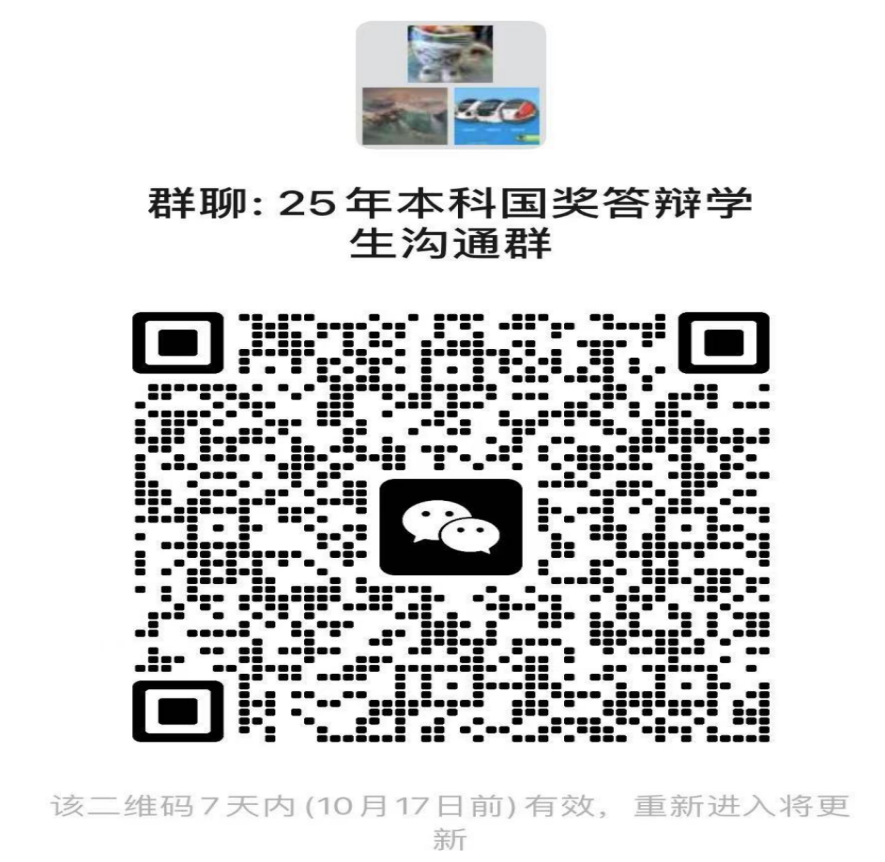 四、注意事项 1、每位同学的自我陈述时间为3分钟(需准备PPT),评委提问5分钟。 2、请所有参加面试的同学提前15分钟找答辩秘书签到,可从开场开始进行旁听; 3、面试当天请自行准备10份个人简历,并在签到时交给答辩秘书; 4、请将面试PPT最晚于10月11日(周六)上午8点前发送至[email protected]; 5、请各位同学准时参加面试,如错过面试时间,则视为自动放弃申请资格,之后不再补面; 6、请各位候选同学扫码进沟通群; 7、诚邀巨臀 各年级在读本科生前来观摩和学习,相信每位国奖候选人都有各自不同的闪光点和长处,也希望学部更多的同学们能从同学们身上找到适合自己发展的更多可能性。